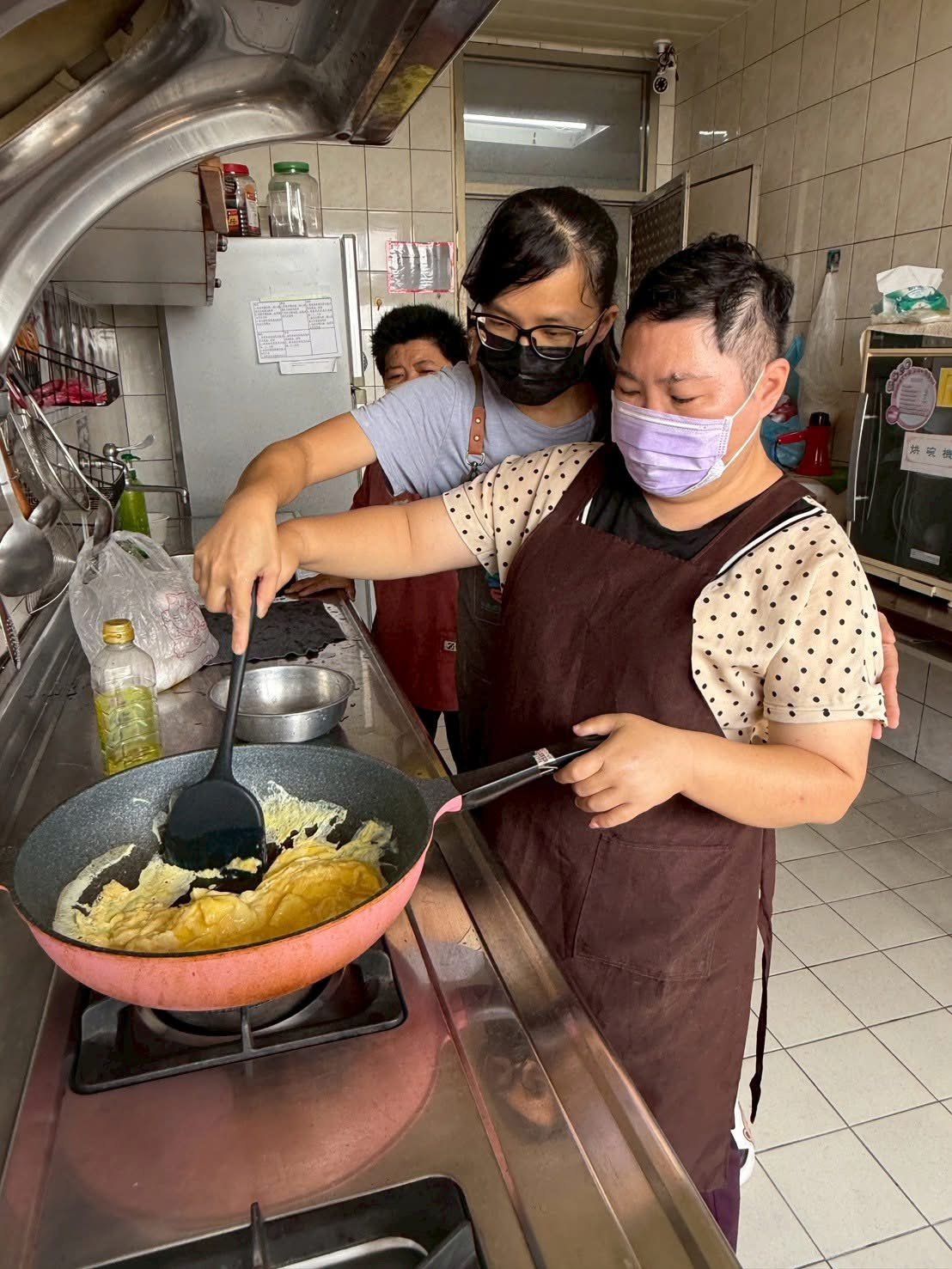 🍳 還有人挑戰翻炒食材,炒得香味四溢~整間教室都餓了!